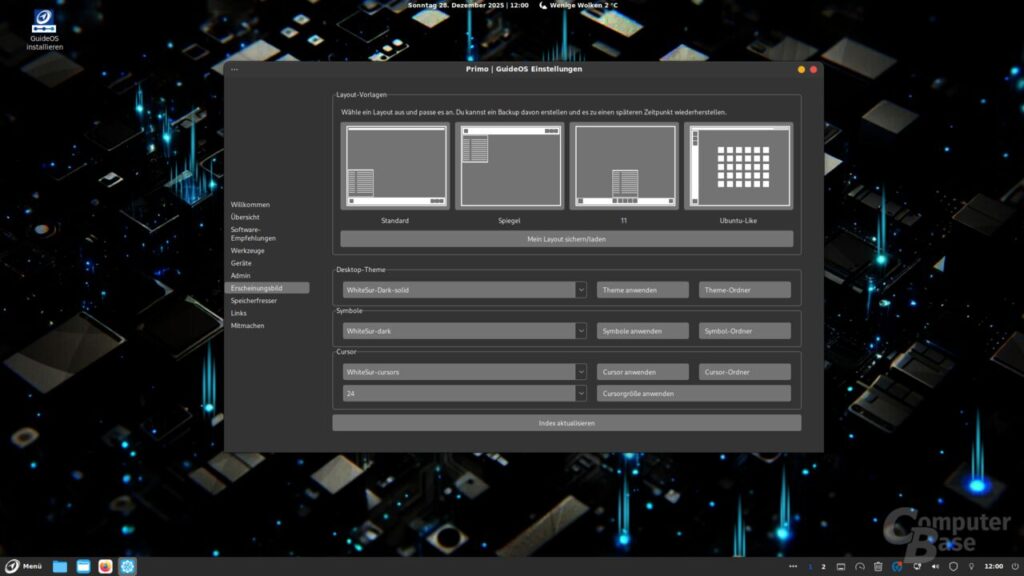GuideOS is a German Linux distribution, created from the community of Linux Guides. Technically, the whole thing is based on Debian, and the compilation of the operating system is created on the basis of community feedback. A special feature of the distribution is its own control center PRIMO. This makes it easy to manage software. The appearance of Linux, which is equipped with the Cinnamon desktop, can also be changed via the central software. An overview tab shows the current system load and memory usage. “Tools” link directly to important system settings. A device tab also provides a quick overview of, for example, connected USB and PCI devices. But also common admin commands such as the update via apt or Flatpak are available with one click. The listing of “memory eaters” on the system is also convenient. Version 1.0 is available for download on the project page.